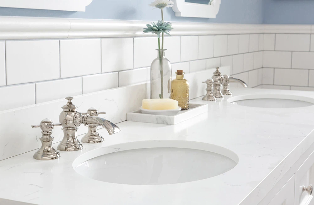Искусственный кварц стал популярным выбором для туалетных столиков в главной ванной комнате из-за его замечательной прочности и огромной цветовой гаммы. При правильном уходе и защите наши кварцевые столешницы могут сохраняться всю жизнь, несмотря на пятна от макияжа.